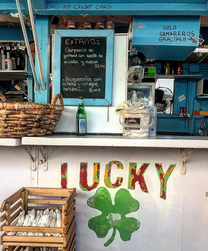 Anche la storia del nome è casuale e fortunata allo stesso tempo. Una volta rilevato il chiringuito volevamo subito avviare un merchandising di t-shirt, che avrebbe permesso di farci conoscere tra gli amici e di diffondere così il nome dell’attività. Per fare questo ci affidammo al mio amico, proprio quello che avevo accompagnato sull’isola per cercare un negozio. Lui lavorava nel mondo della moda e le magliette che ci mise a disposizione per far stampare il nome del chiringuito, ancora orfano di un’identità fino a quel momento, avevano un’etichetta con la scritta Lucky.